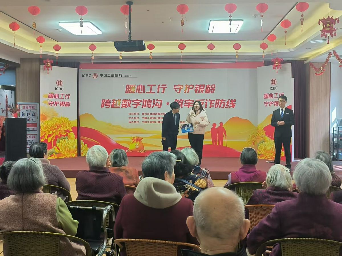 2026年3月9日下午,在“3·15”国际消费者权益日即将到来之际,中国工商银行泉州分行在泉州市金融消费者权益保护协会的指导下,联合泉港区聚福社区和爱之家养老服务中心,共同走进聚福社区开展暖心工行 守护银龄“3·15”主题宣传活动。活动采用普通话+闽南语双语全覆盖宣教模式,让老年人听得懂、记得牢、用得上,切实守护老年人的“钱袋子”。