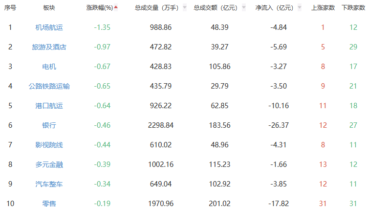 行业板块方面,保险、医疗器械、医疗服务等板块涨幅居前,机场航运、旅游及酒店、电机等板块跌幅居前。