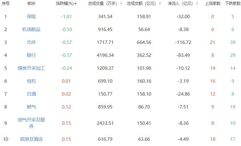 A股市场板块涨跌幅排行