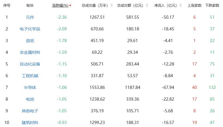 板块方面,小金属、通信服务、电力等涨幅居前,元件、电子化学品、造纸等跌幅居前。