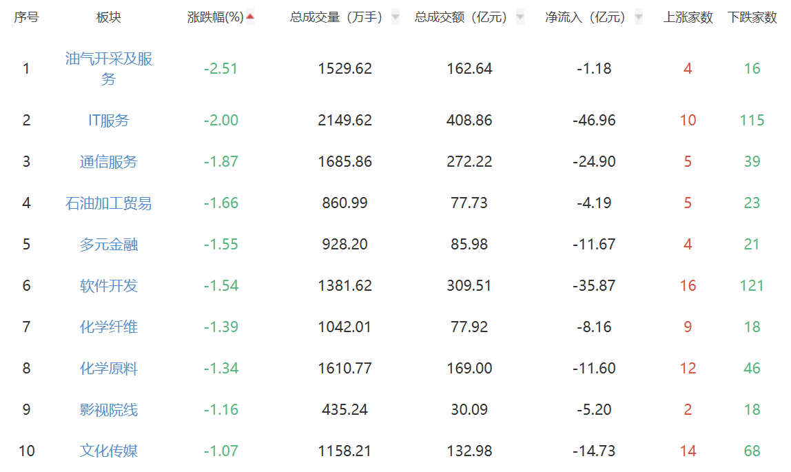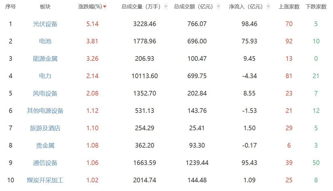 板块方面,光伏设备、电池、能源金属等涨幅居前,油气开采及服务、IT服务、通信服务等跌幅居前。