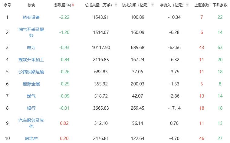 板块方面,医疗服务、生物制品、化学制药等涨幅居前,轨交设备、油气开采及服务、电力等跌幅居前。