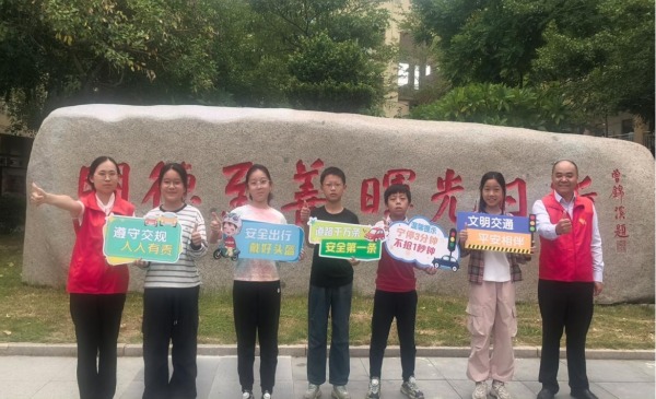 “活动现场,一幅幅图文并茂的宣传展板也吸引了孩子们的目光。”“道路千万条,安全第一条”“宁停三分钟,不抢一秒钟”……朗朗上口的标语像一首首安全童谣,悄然浸润着童心。志愿者们不仅耐心讲解安全知识,更通过现场演示,教会孩子们如何正确佩戴安全头盔,将“一盔一带”的重要性深植于心。