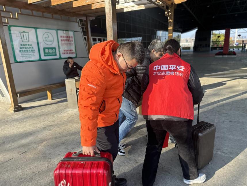 这其中,既有从海外远道而归的游子,也有在外拼搏一年、满载收获返乡的务工乡亲。从印尼刚回来的陈大哥:“刚出站有点懵,行李箱还坏了个轮子,志愿者不仅帮我搬箱子,还用家乡话指路,瞬间感觉真的到家了。”这份跨越山川湖海的举手之劳,在如今的快节奏社会里,续写着关于归家与接纳的古老温情。