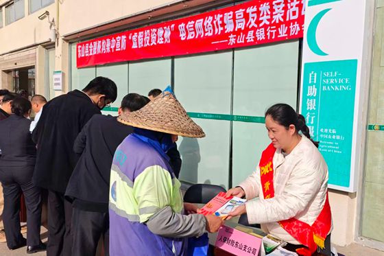 近日,人保财险福建漳州东山支公司作为东山县唯一受邀保险机构,参与东山县银行业协会组织的“虚假投资理财”集中宣传活动,积极履行金融机构社会责任,助力防范电信网络诈骗。