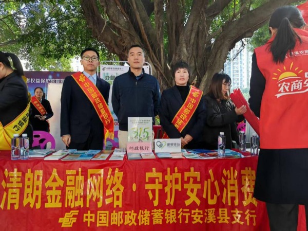 3月13日,邮储银行安溪县支行积极组织开展以“清朗金融网络·守护安心消费”为主题的金融消费者权益保护教育宣传活动。